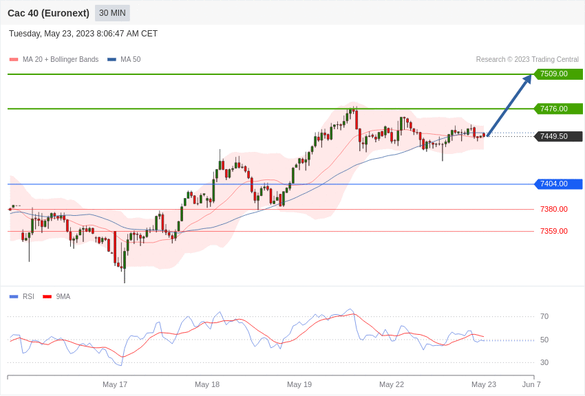 Klíčová slova: Intradenní výhled | Indikátor | Long | Pozice | RSI | Rezistence | Trading | CAC 40 | Pivot | Trading Central | Supporty a rezistence | Výhled | Pokles | Indikátor RSI | Dlouhé (long) pozice |