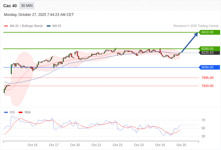 Klíčová slova: Intradenní výhled | Konsolidace | Long | Pozice | Rezistence | Trading | CAC 40 | Pivot | Trading Central | Supporty a rezistence | Výhled | Pokles | Dlouhé (long) pozice | Supporty |