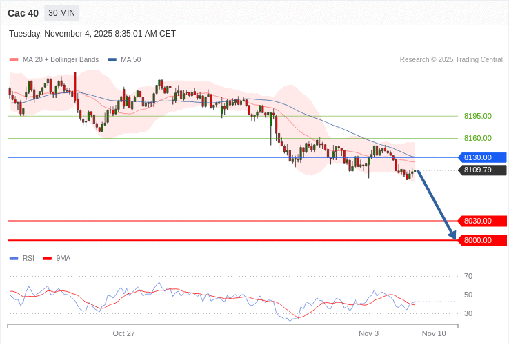 Klíčová slova: Intradenní výhled | Indikátor | Pozice | RSI | Rezistence | Short | Trading | CAC 40 | Pivot | Trading Central | Supporty a rezistence | Výhled | Krátké (short) pozice | Indikátor RSI | Růst | Supporty |