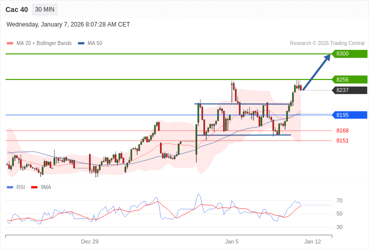 Klíčová slova: Intradenní výhled | Indikátor | Long | Pozice | RSI | Rezistence | Trading | CAC 40 | Pivot | Signály | Trading Central | Supporty a rezistence | Výhled | Pokles | Indikátor RSI | Dlouhé (long) pozice | Supporty |