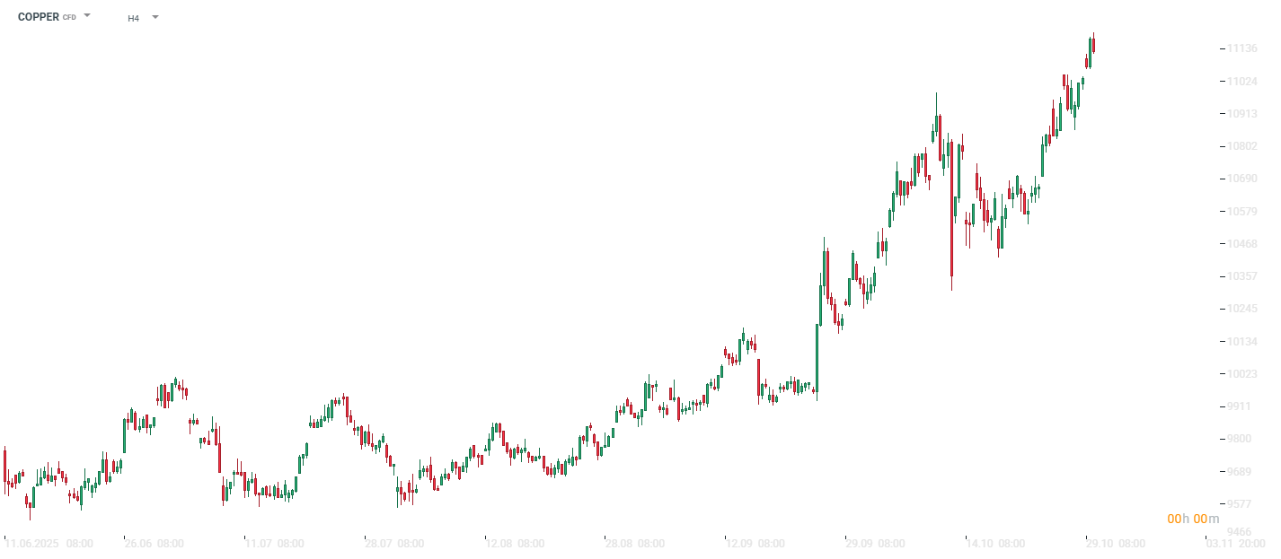 Cena mědi překonala hladinu 11.000 dolarů za tunu