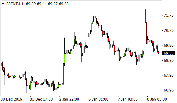 Vývoj ceny ropy Brent (1hodinový graf – H1):