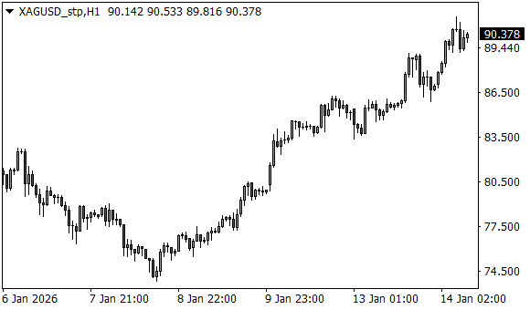 Vývoj ceny stříbra (1hodinový graf - H1):