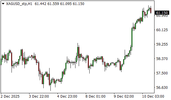 Vývoj ceny stříbra (1hodinový graf - H1):