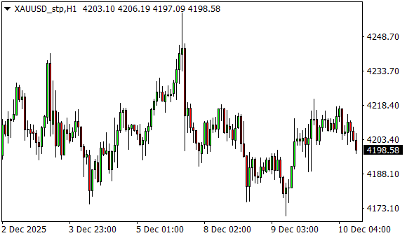 Vývoj ceny zlata (1hodinový graf - H1):