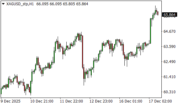 Vývoj ceny stříbra (1hodinový graf - H1):