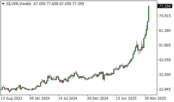 Analytik firmy OANDA Kelvin Wong očekává, že cena zlata by mohla do první poloviny roku 2026 mohla dosáhnout 5000 dolarů (102.980 Kč) za unci, potenciál stříbra pak vidí kolem 90 dolarů (1853 Kč) za unci.