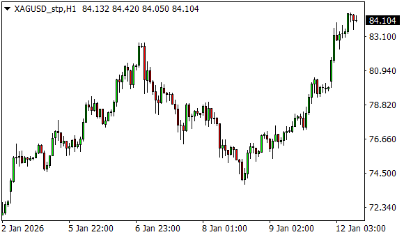 Vývoj ceny stříbra (1hodinový graf - H1):