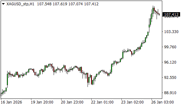 Vývoj ceny stříbra (1hodinový graf - H1):