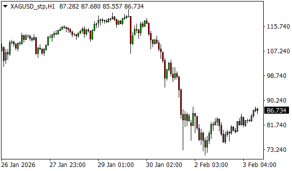 Vývoj ceny stříbra (1hodinový graf - H1):