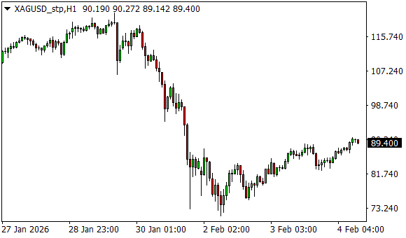 Vývoj ceny stříbra (1hodinový graf - H1):