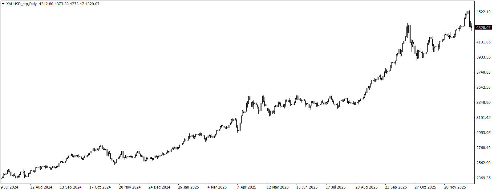 Vývoj ceny zlata (denní graf - D1):