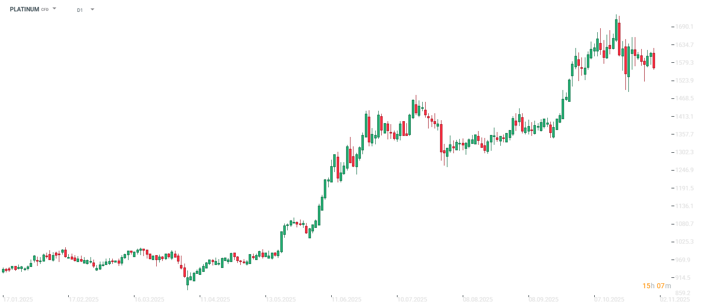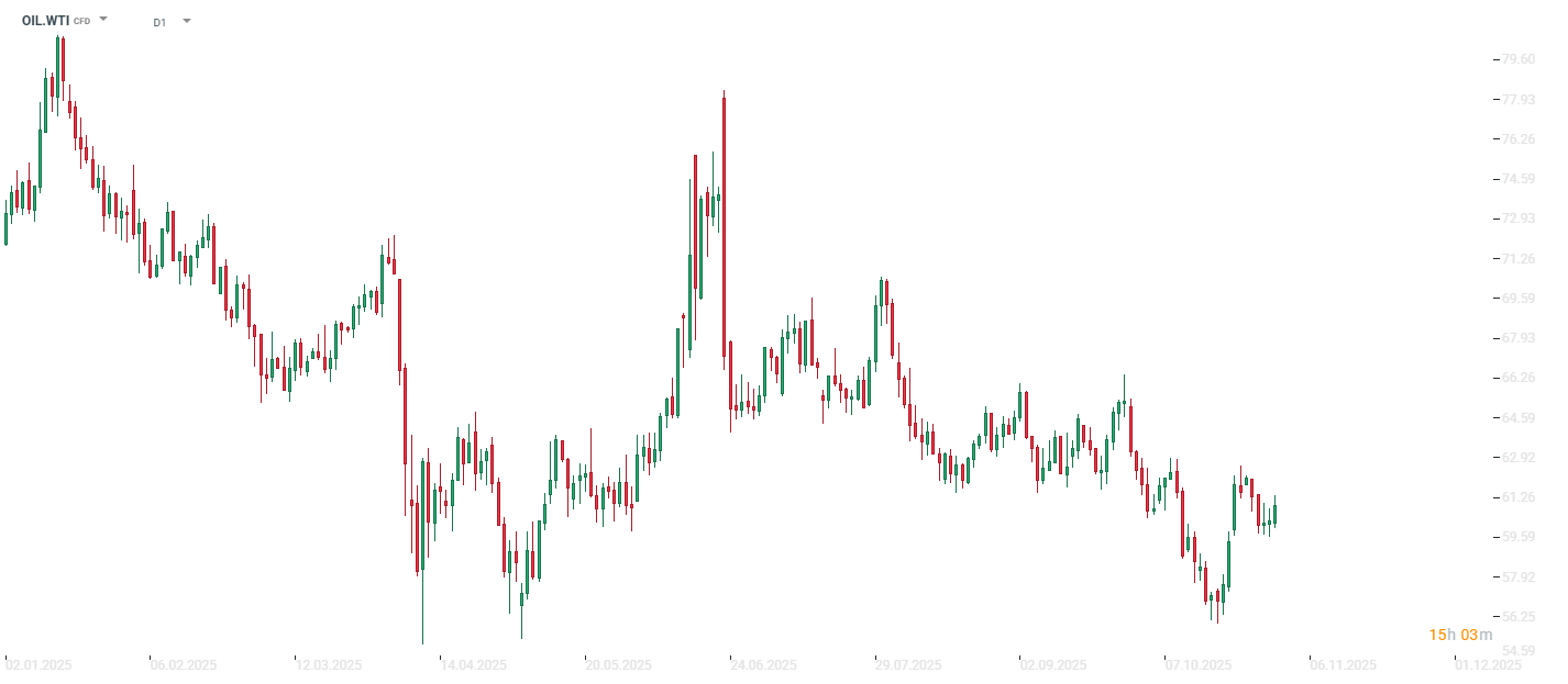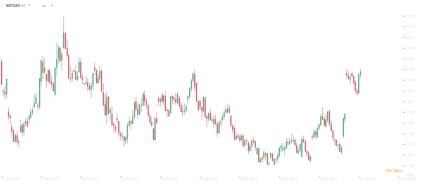 Ropa naopak zlevnila. Severomořský Brent do konce října ztratil 13 procent, americká lehká ropa West Texas Intermediate (WTI) pak 16 procent. Ceny se drží mírně nad šedesátidolarovou úrovní. Skupina OPEC+ už od jara zvyšuje těžbu a současně rekordně roste i produkce v USA a dalších zemích. Trh se tak potýká s přebytkem suroviny, který ceny stlačuje.