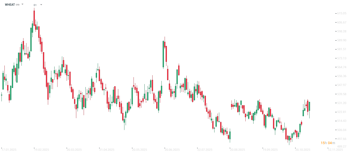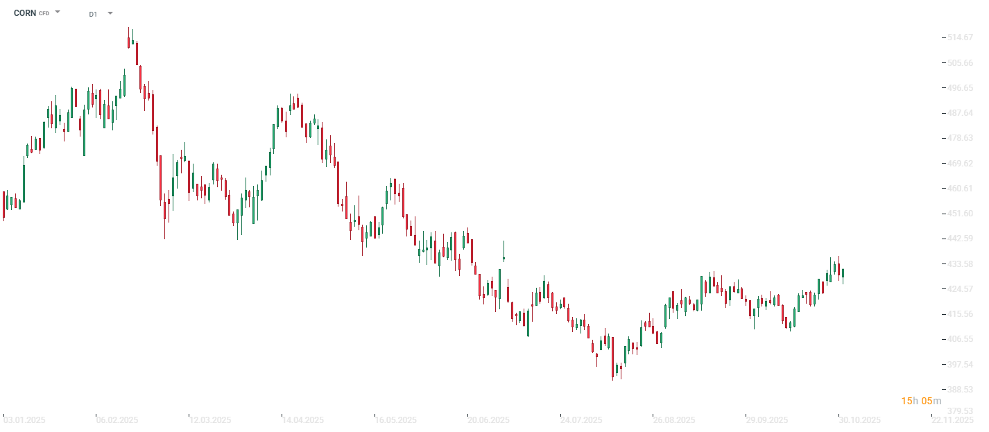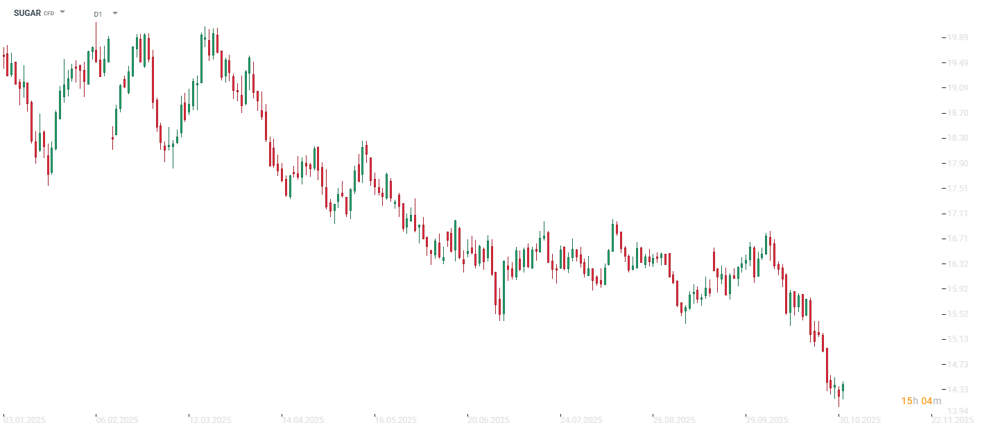 Cena pomerančového koncentrátu od začátku roku klesla o 65 procent, po dvou letech neúrody se totiž normalizovala produkce na Floridě i v Brazílii. V propadu pokračuje také cena cukru. Letos cukr zlevnil o 26 procent a cena spadla na pětileté minimum k úrovni 14 centů za libru. Důvodem je vysoká produkce a nízké ceny ropy, které omezují poptávku po etanolu z cukrové třtiny. Pšenice už letos přišla o šest procent a stejným tempem klesá i cena kukuřice. Rekordní úroda v USA i v Evropě srazila ceny k nejnižším úrovním od roku 2020, dodal Tyleček.