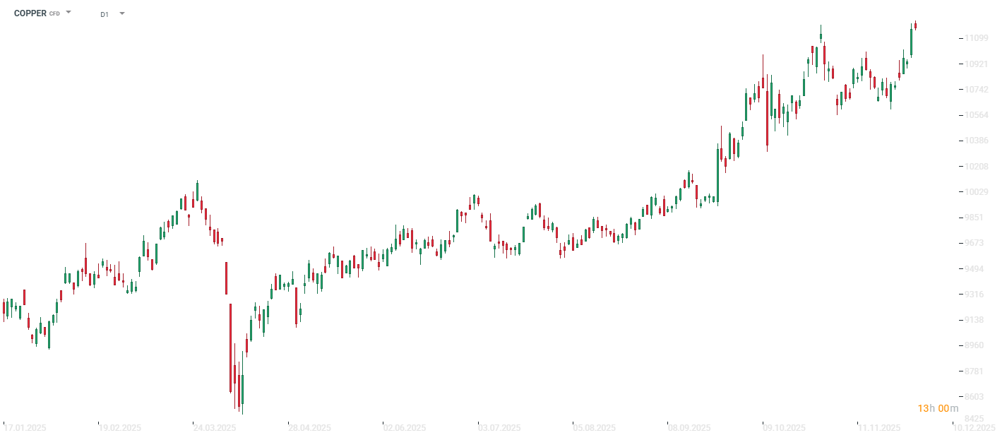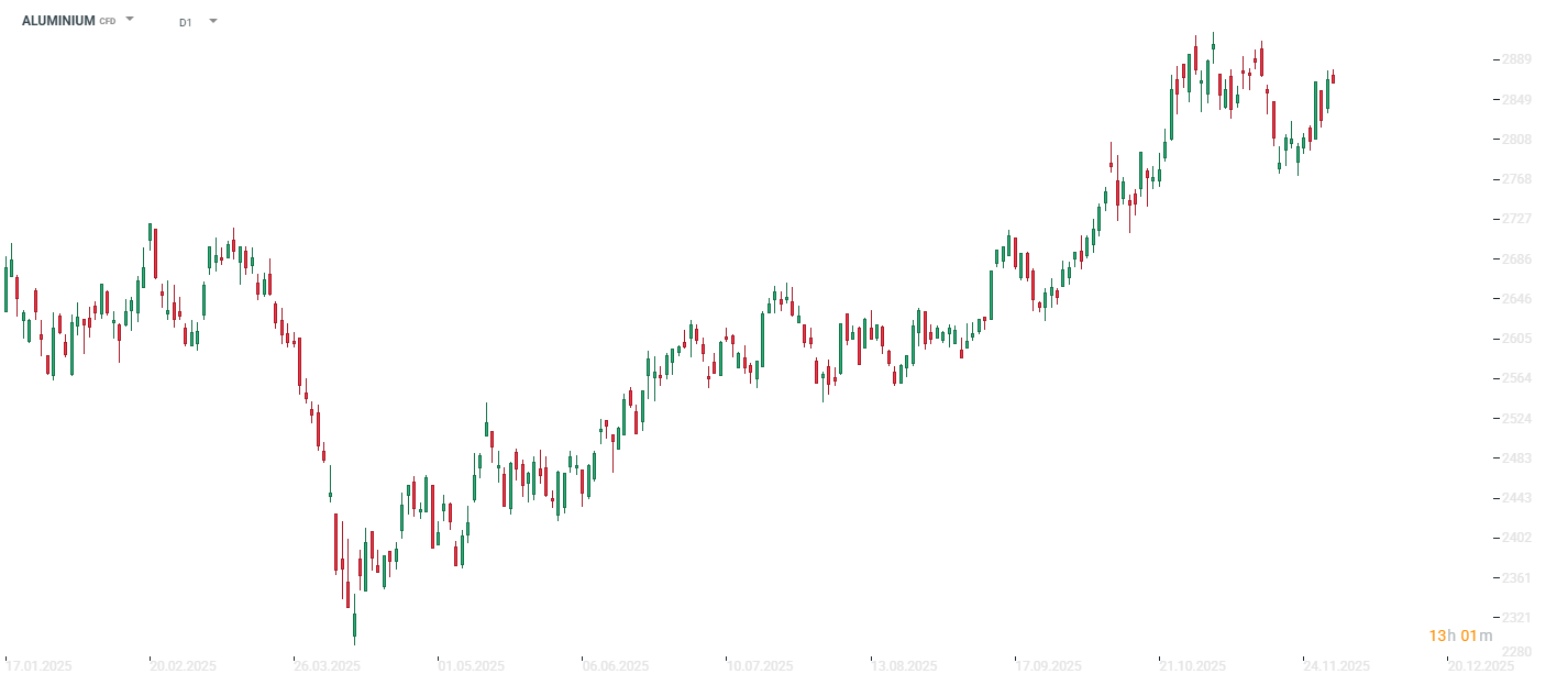 Cena mědi se podle Tylečka po kolísavém začátku roku vydala prudce vzhůru. Cena v Londýně koncem listopadu rostla o 25 procenta a vyšplhala se na nové maximum. Katalyzátorem zdražení se stala série nehod v klíčových dolech v Indonésii a Chile, které omezily globální nabídku kovu. K růstu přispělo také oznámení obchodní dohody mezi USA a Čínou na konci října. Hliník posílil od začátku roku o 11 procent a obchoduje se poblíž tříletých maxim. K jeho růstu přispěla rostoucí produkce elektromobilů a strategické nákupy zásob v Číně.