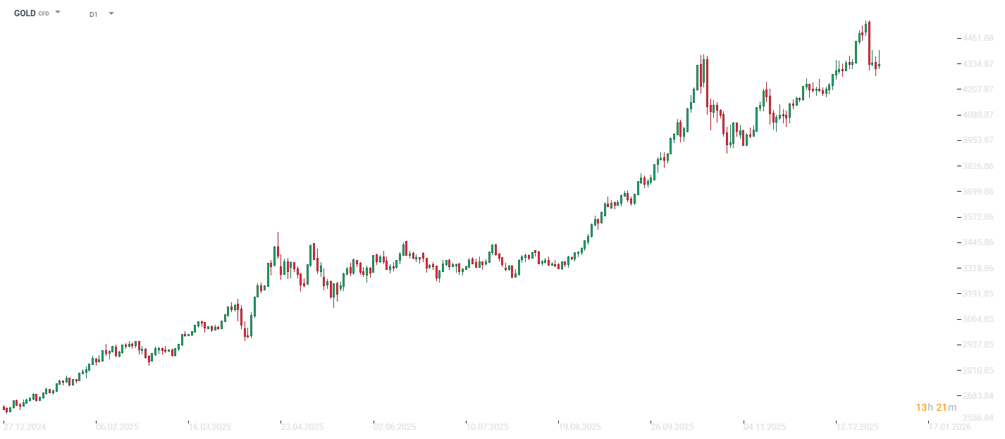"Zlato znovu potvrdilo roli bezpečného přístavu. Investoři se k němu uchylovali kvůli očekávanému snižování úrokových sazeb v USA, slabšímu dolaru a geopolitické nejistotě. Silné nákupy centrálních bank spolu s rostoucím zájmem o zlaté ETF fondy držely poptávku po zlatě na nejvyšší úrovni za poslední desetiletí," uvedl analytik XTB Jiří Tyleček.