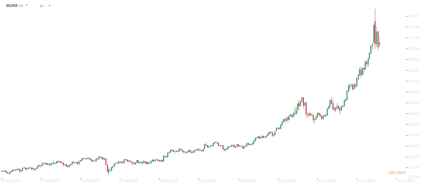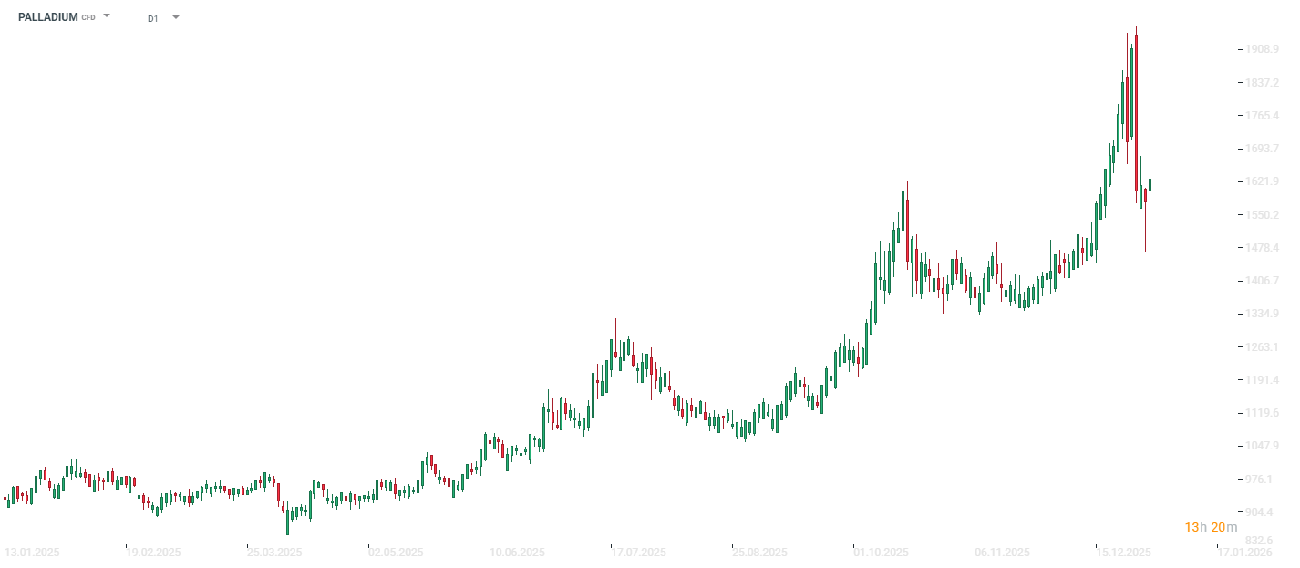 Cena zlata loni vzrostla o dvě třetiny na 4319 dolarů za unci, doplnil analytik Golden Gate Pavel Ryba. V závěru roku přitom žlutý kov překonal rekordních 4500 dolarů a krátce se prodával za 4534 USD. Ještě větší růst má za sebou stříbro, které zdražilo o 148 procent na téměř 72 dolarů. V prosinci se přitom na novém rekordu přiblížilo 80 dolarům. Palladium loni posílilo o 83 procent na 1662 dolarů.
