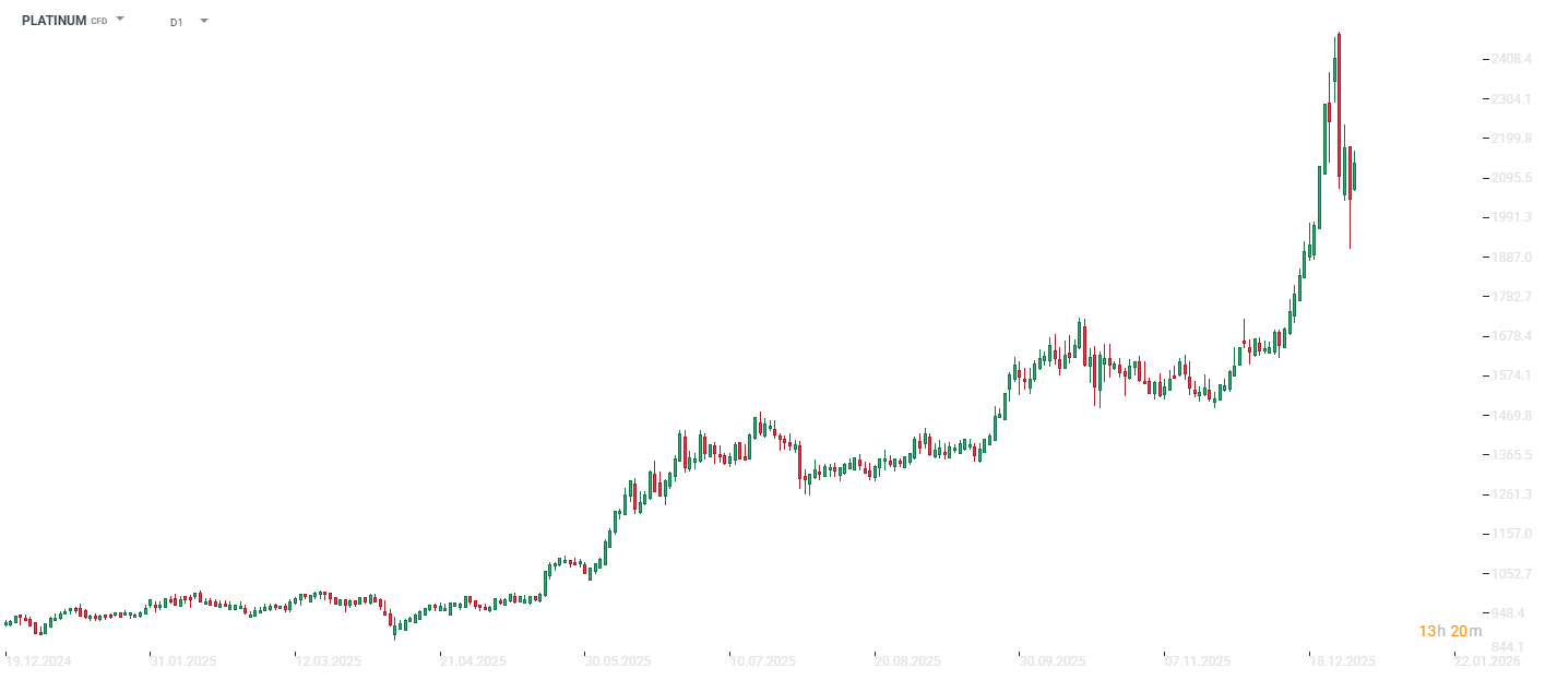 Platina v závěru roku prudce vystřelila na historická maxima, upozornil Tyleček. K jeho vzestupu přispěla omezená těžba v Jihoafrické republice a nákupy čínských investorů po spuštění obchodování s platinovými futures.