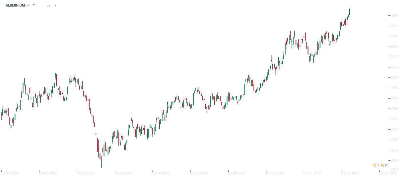 Měď se po kolísavém začátku roku vydala prudce vzhůru, od začátku roku se zhodnotila o 42 procent. Katalyzátorem růstu byla série havárií v klíčových dolech v Indonésii a Chile, které omezily globální nabídku. Hliník posílil od začátku roku o 17 procent a obchodoval se poblíž nejvyšších úrovní od roku 2022. Jeho zdražování podpořil rozmach výroby elektromobilů a čínské strategické nákupy.