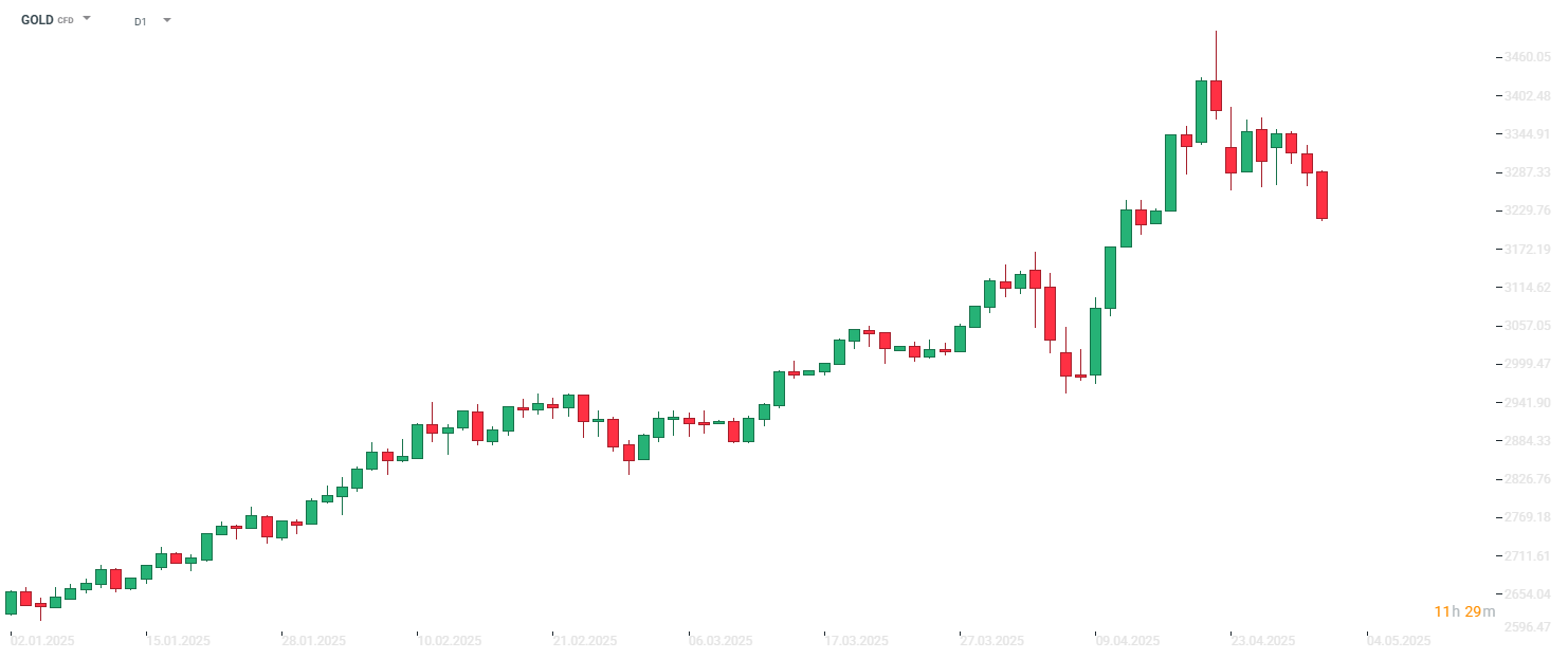 Cena zlata od začátku roku do konce dubna vzrostla o 26 procent. Ve druhé polovině dubna přitom kov dosáhl rekordních více než 3500 dolarů za troyskou unci (oz; 31,1 gramu), řekl ČTK analytik Golden Gate Pavel Ryba. Stříbro za první čtyři měsíce přidalo téměř 14 procent, palladium si polepšilo o 3,1 procenta a cena platiny se zvýšila o osm procent.