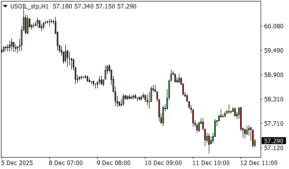 Vývoj ceny ropy WTI (1hodinový graf - H1):
