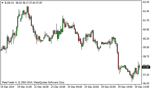 Vývoj ceny ropy Brent (1hodinový graf – H1):