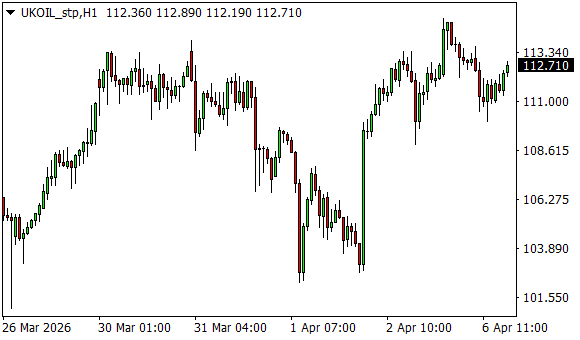 Vývoj ceny ropy Brent (1hodinový graf - H1):