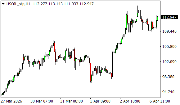 Vývoj ceny ropy WTI (1hodinový graf - H1):