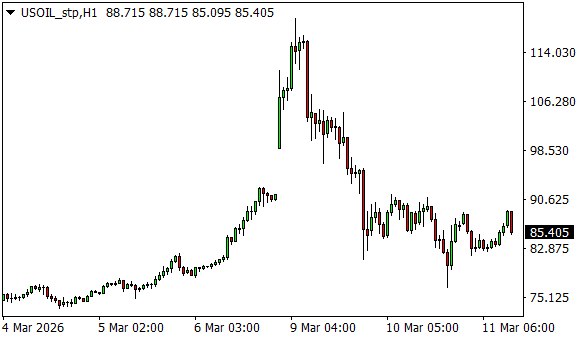 Vývoj ceny ropy WTI (1hodinový graf - H1):