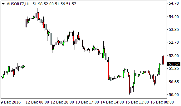 Vývoj ceny ropy WTI (1hodinový graf – H1):