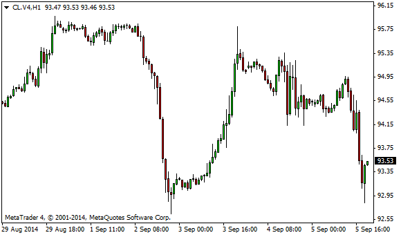 Vývoj ceny ropy WTI (1hodinový graf – H1):