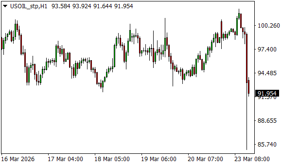 Vývoj ceny ropy WTI (1hodinový graf - H1):