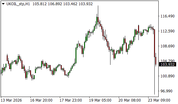 Vývoj ceny ropy Brent (1hodinový graf - H1):