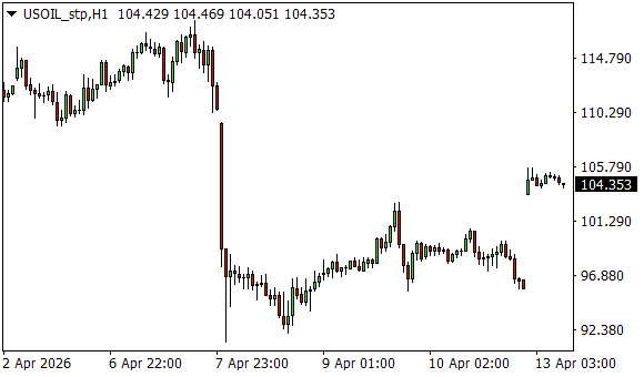 Vývoj ceny ropy WTI (1hodinový graf - H1):