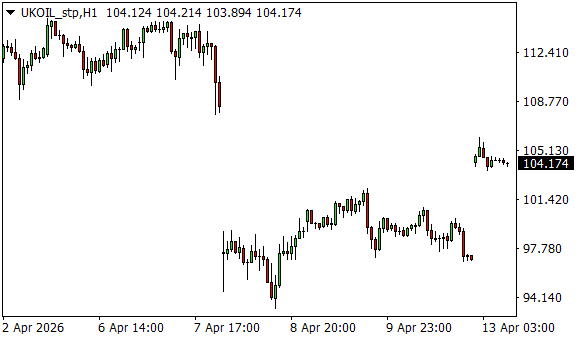 Vývoj ceny ropy Brent (1hodinový graf - H1):