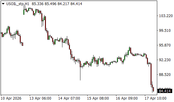 Vývoj ceny ropy WTI (1hodinový graf - H1):