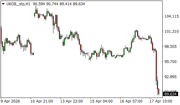Vývoj ceny ropy Brent (1hodinový graf - H1):