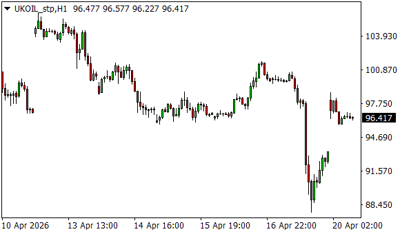 Vývoj ceny ropy Brent (1hodinový graf - H1):