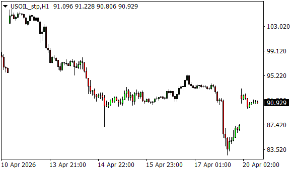 Vývoj ceny ropy WTI (1hodinový graf - H1):