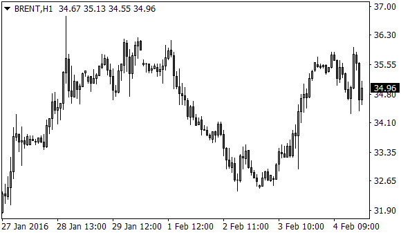 Vývoj ceny ropy Brent (1hodinový graf – H1):