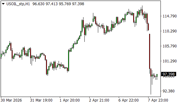 Vývoj ceny ropy WTI (1hodinový graf - H1):