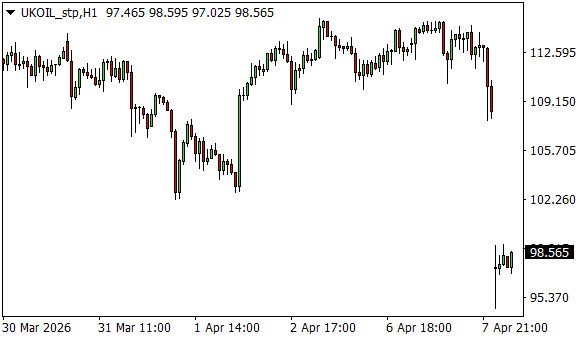 Vývoj ceny ropy Brent (1hodinový graf - H1):