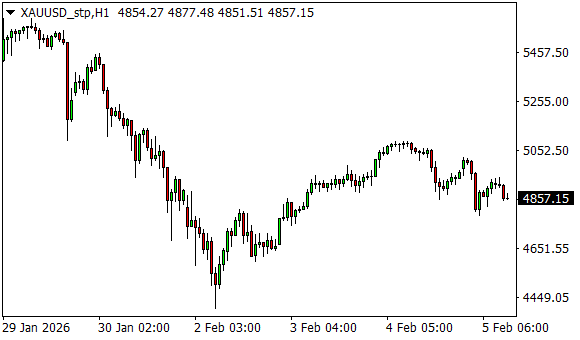 Vývoj ceny zlata (1hodinový graf - H1):