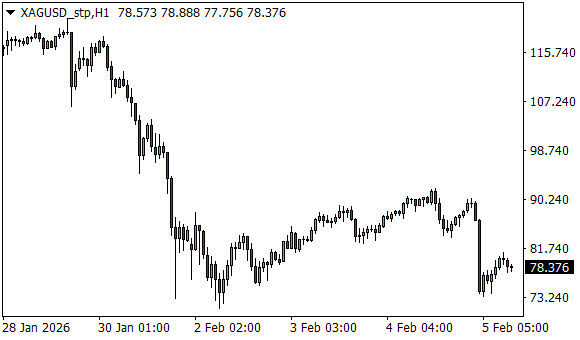Vývoj ceny stříbra (1hodinový graf - H1):