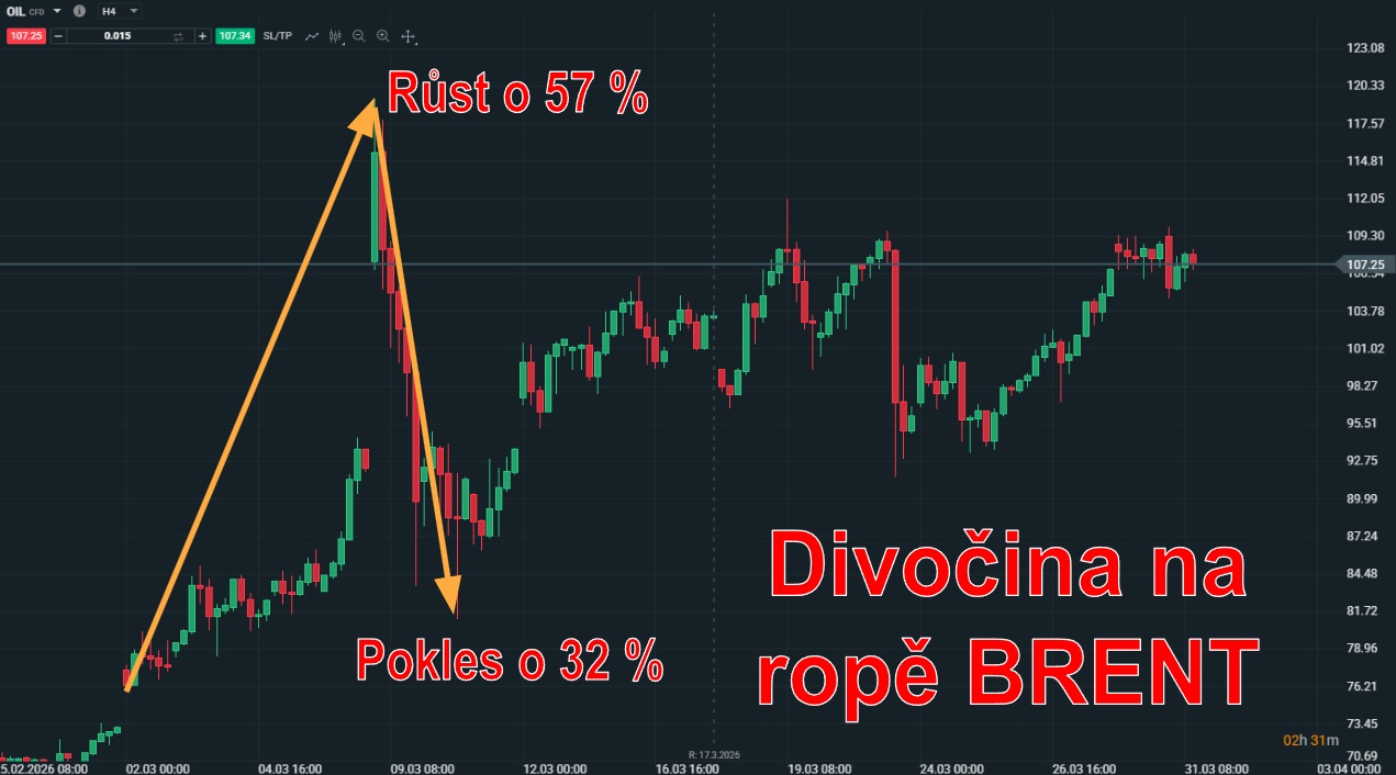 Události na Blízkém východě vytvořily prostředí vysoké volatility s tím, že hlavní obětí válečného konfliktu se stala ropa, jejíž cena začátkem března vystřelila o 57 % vzhůru. Sice byl následně tento pohyb trhem prudce korigován, a to poklesem o 32 %, nicméně ve zbytku měsíce měla ropa opět tendenci vracet se na vyšší hodnoty. Obchodníci tak mohli využít volatility v obou směrech ve svůj prospěch a na této situaci vydělat obrovské peníze.