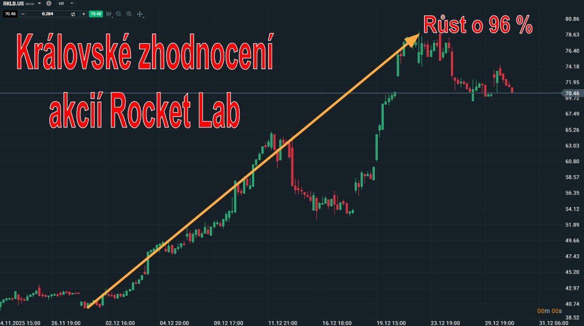 Jen zřídka se stává, aby akcie ze segmentu large cap předvedly cenový růst blížící se třímístným hodnotám. Akciím Rocket Lab se sice v prosinci tuto hranici nepodařilo překonat, investoři jim to však nejspíš nebudou mít za zlé. Měsíční růst o 96 % je totiž mimořádný výsledek a zároveň odměna pro ty, kteří dokážou udržet rozjetý obchod a nepodlehnout krátkodobým výkyvům trhu.