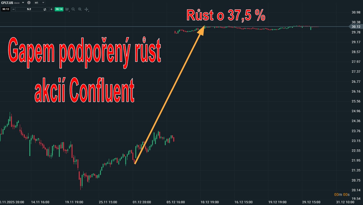 Na své si v prosinci přišli i investoři do akcií Confluent, i když v jejich případě šlo o velmi rychlý a jednorázový skok na vyšší hodnoty. K výraznému cenovému gapu došlo poté, co společnost IBM oficiálně oznámila akvizici Confluentu za přibližně 11 miliard USD, což vedlo k prudkému přecenění akcií ještě před otevřením trhu. Akcie tak v první polovině měsíce vystřelily o 37,5 %. V posledních dnech roku 2025 se jejich cena již výrazněji neměnila, což investorům nemusí vadit, protože dosaženého zisku měli možnost skvěle využít.
