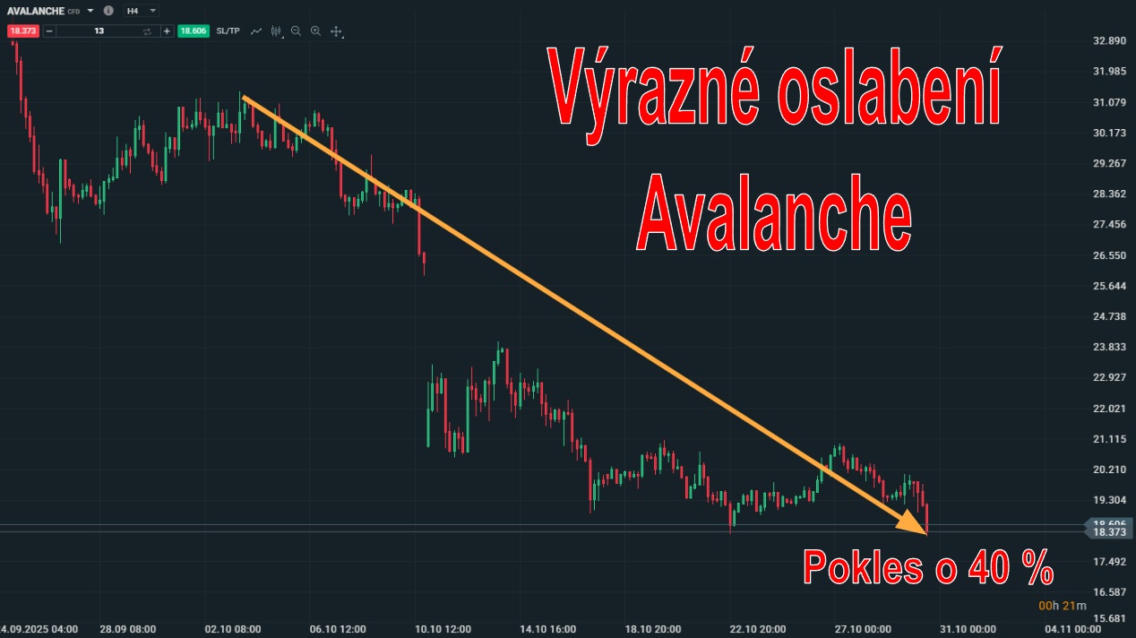 Cenová stagnace Bitcoinu v říjnu přispěla k negativní náladě napříč trhem altcoinů. Největším poraženým mezi hlavními kryptoměnami se stala kryptoměna Avalanche, která během měsíce ztratila přibližně 40 % ze své hodnoty. Pro zkušené obchodníky to však byla short (sell) příležitost, jak si přijít na rychlé a relativně snadné zisky bez obav z nečekaných korekcí.