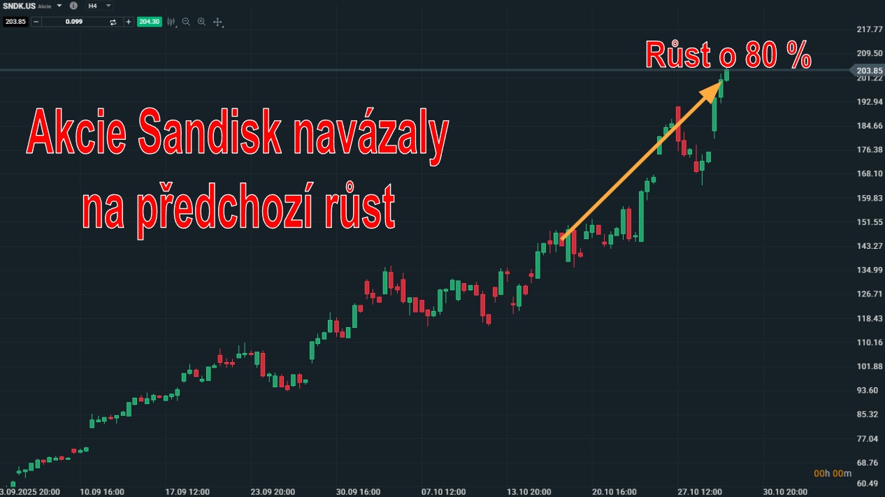 Mezi nejvýkonnější americké large cap akcie se v říjnu znovu zařadily akcie společnosti SanDisk. Ty si připsaly ohromujících 80 % a i na konci měsíce se drží na svých cenových maximech. Investoři, kteří včas rozpoznali jejich potenciál, dnes sedí na velmi zajímavém otevřeném zisku.