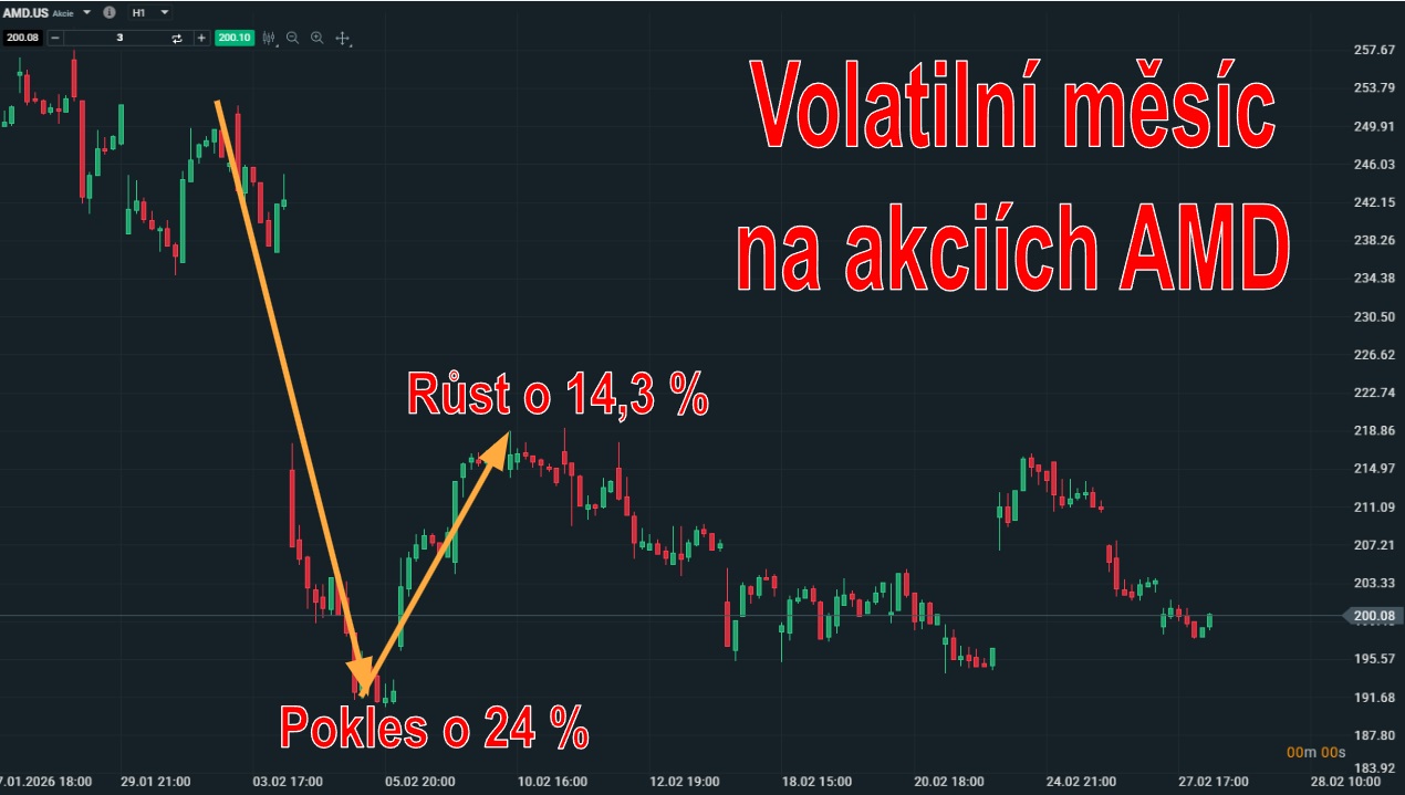 Nervozita v technologickém segmentu na akciích AMD vyústila ve vznik poměrně volatilního měsíce. Na druhou stranu tak mohli obchodníci na růstových i klesajících pohybech inkasovat nemalé zisky. Závěr měsíce se však už nesl v duchu postranního trendu, takže akcie tímto směrem mohou pokračovat i na začátku března.